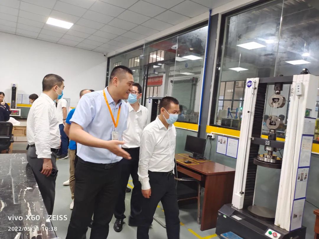 在檢測(cè)室,吳縣長(zhǎng)參觀了材料的檢測(cè)設(shè)備、彈簧的特性檢測(cè)設(shè)備以及疲勞檢測(cè)設(shè)備,同時(shí)鼓勵(lì)我們多做測(cè)試,積累數(shù)據(jù),了解并掌握材料在制作和使用中的力學(xué)分布情況,讓彈簧的性能達(dá)到極致。