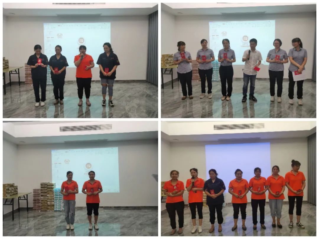 6月是收獲的季節(jié),在公司全體員工辛勤地付出及努力下,6月份銷售額同比增長了40%!拼搏的是汗水,付出的是努力,收獲的是喜悅!公司一共有九個小組,按工分績效的排名首先確定了小組名次以及小組內(nèi)的名次和獎金。員工按名次依次上臺從組長那里領(lǐng)取了屬于自己的那份紅包榮譽,并合影留念!