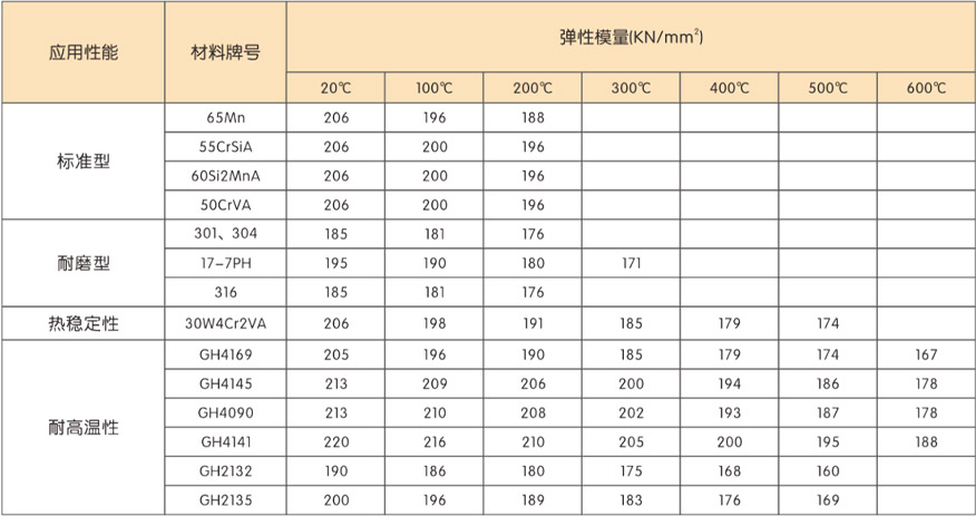 以上溫度為材料推薦最高使用溫度,溫度對彈性模量的影響參照表